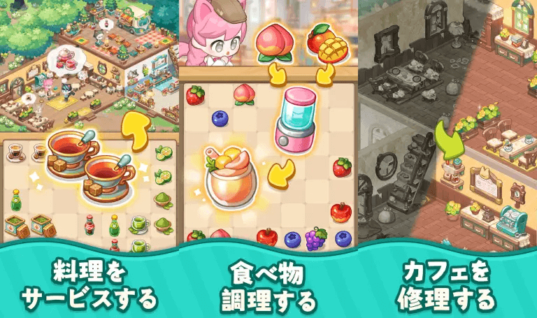 猫だらけの世界でカフェを経営するマージゲームに癒されたい